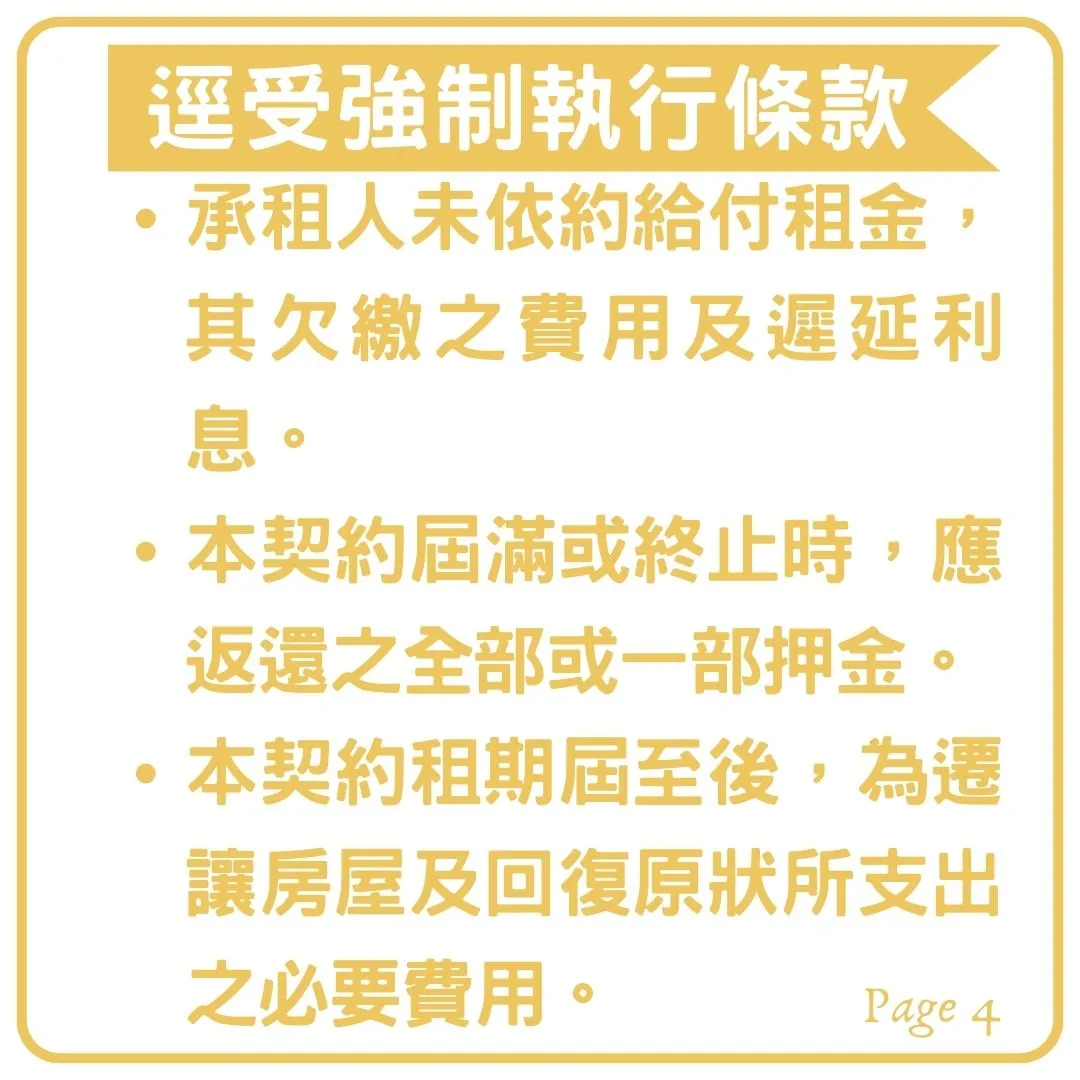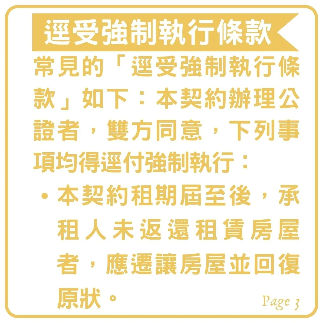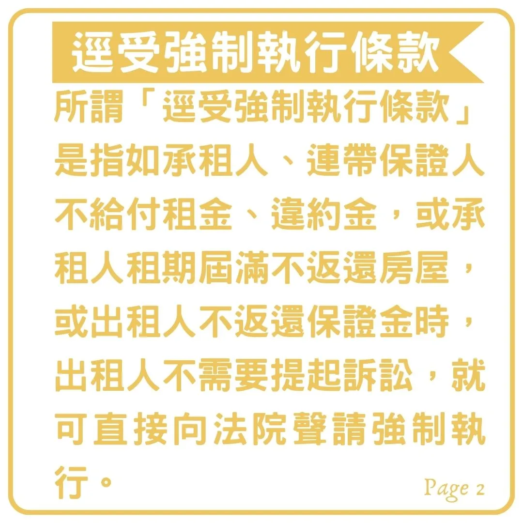 劉哥今天就來跟大家說說租賃契約的逕受強制執行條款。