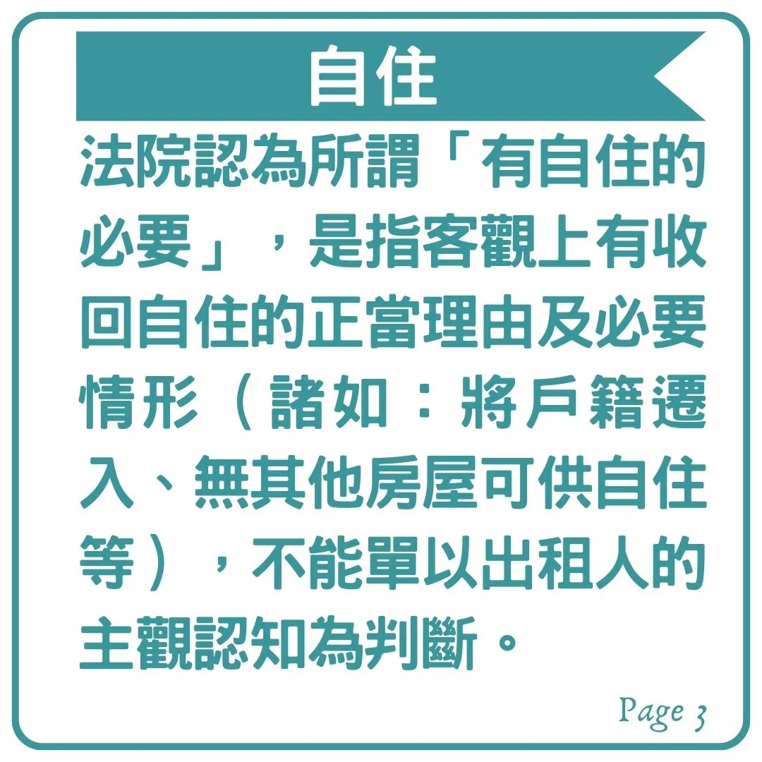<收回不定期限租賃房屋的「自住」>