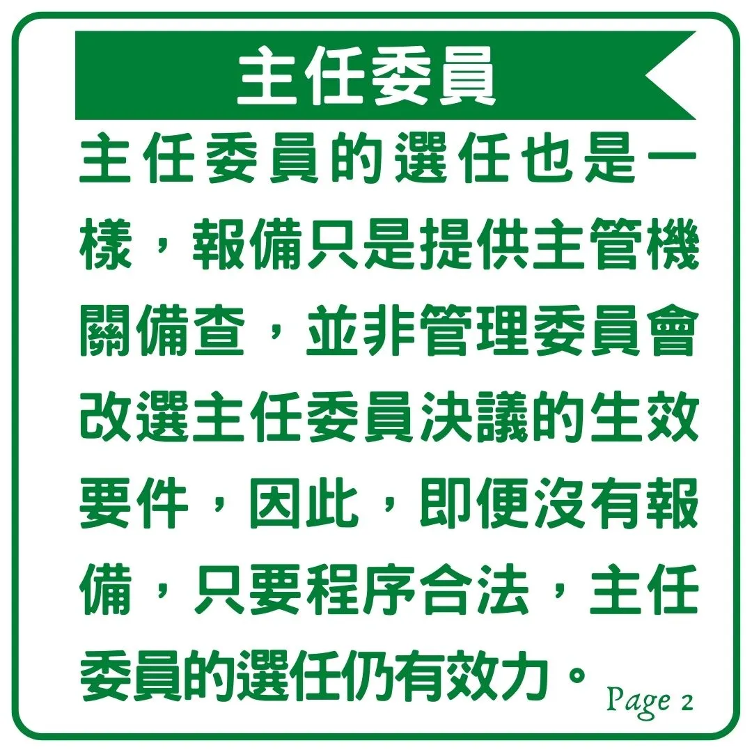 首頁 > 法學Q&A > 社區法律議題 > <管理委員會、主任委員沒有報備就不生效力嗎?>