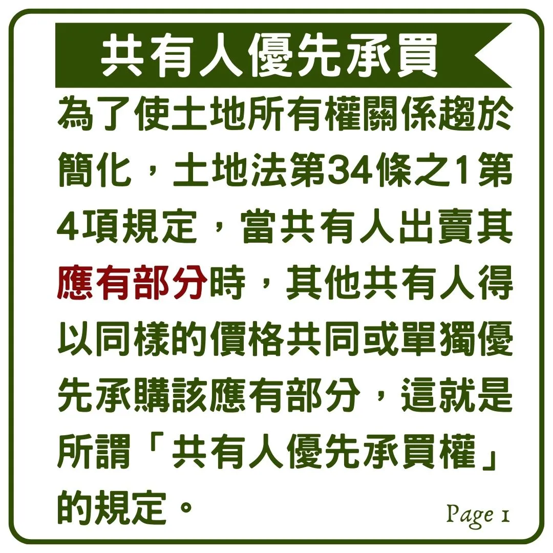 首頁 > 法學Q&A > 民事訴訟 > <土地共有人沒有告知我就出賣應有部分怎麼辦?>